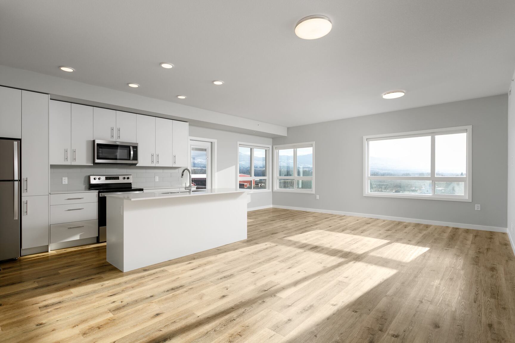 All homes feature European-inspired open concept kitchens with soft-close cabinetry, quartz countertops and a modern Stainless Steel appliance package. With 9 ft ceilings and expansive windows, homes are designed to encourage the Okanagan sun to filter across all living spaces, reflecting the pastel hues of the surrounding landscape.